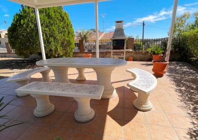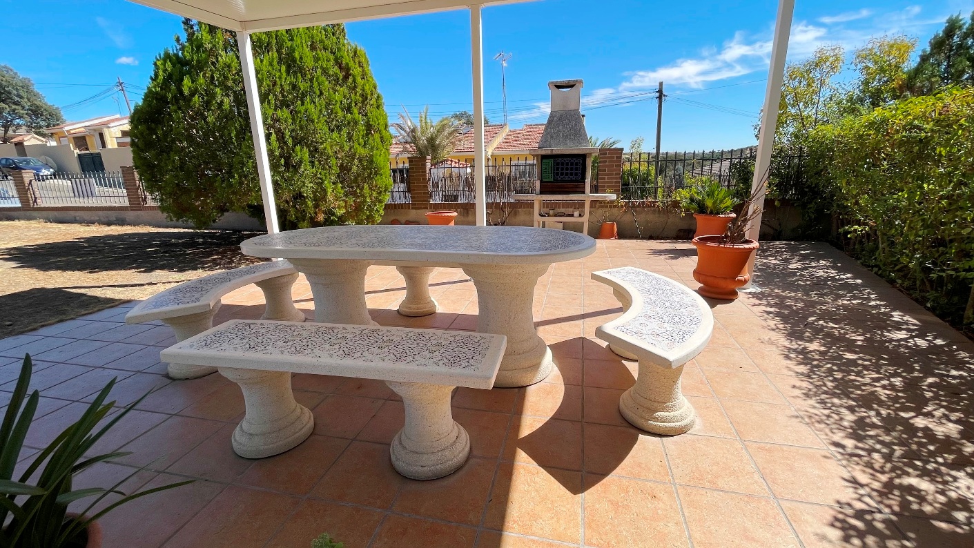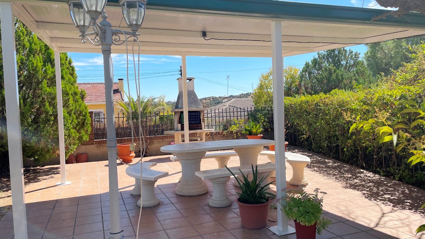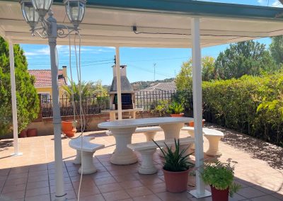 Magnífico jardín con pérgola merendero, riego automático, árboles y estancias muy agradables.