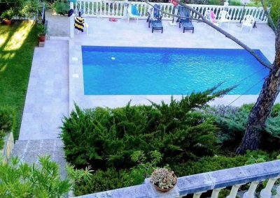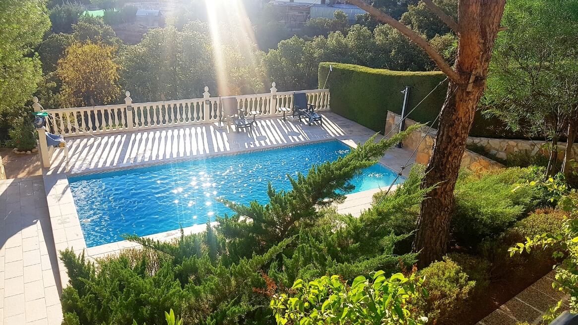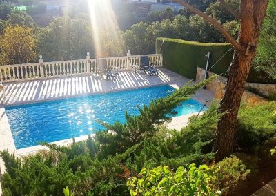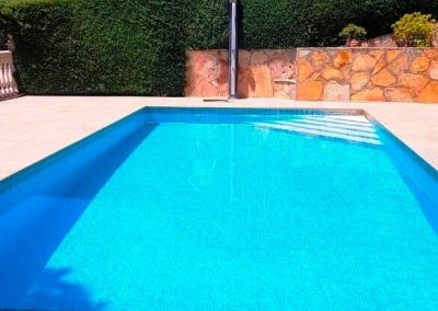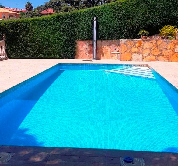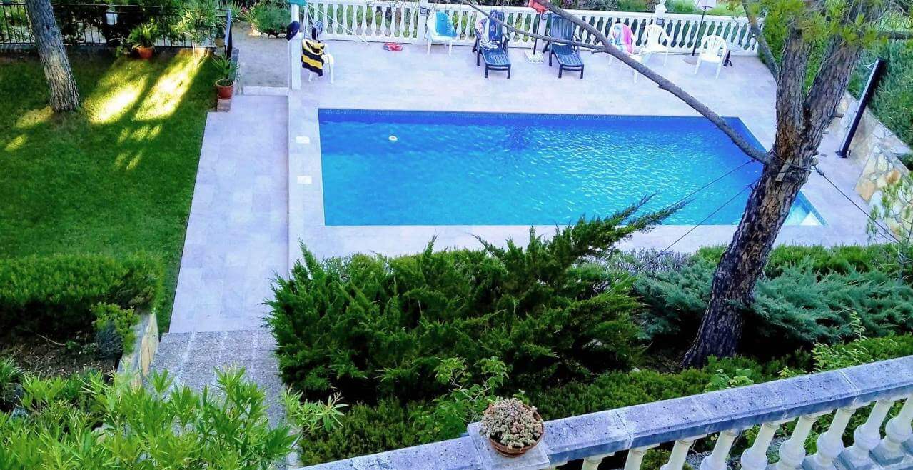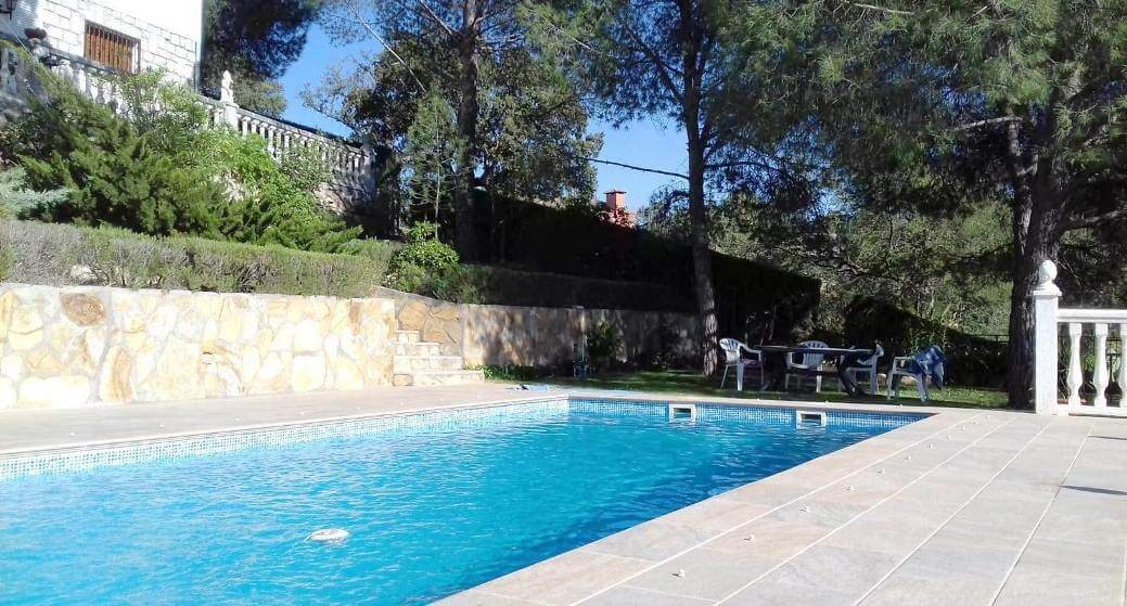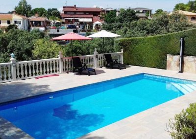 Piscina de 9 X 4 metros con solárium perimetral, cuarto de depuradora y amplio trastero.