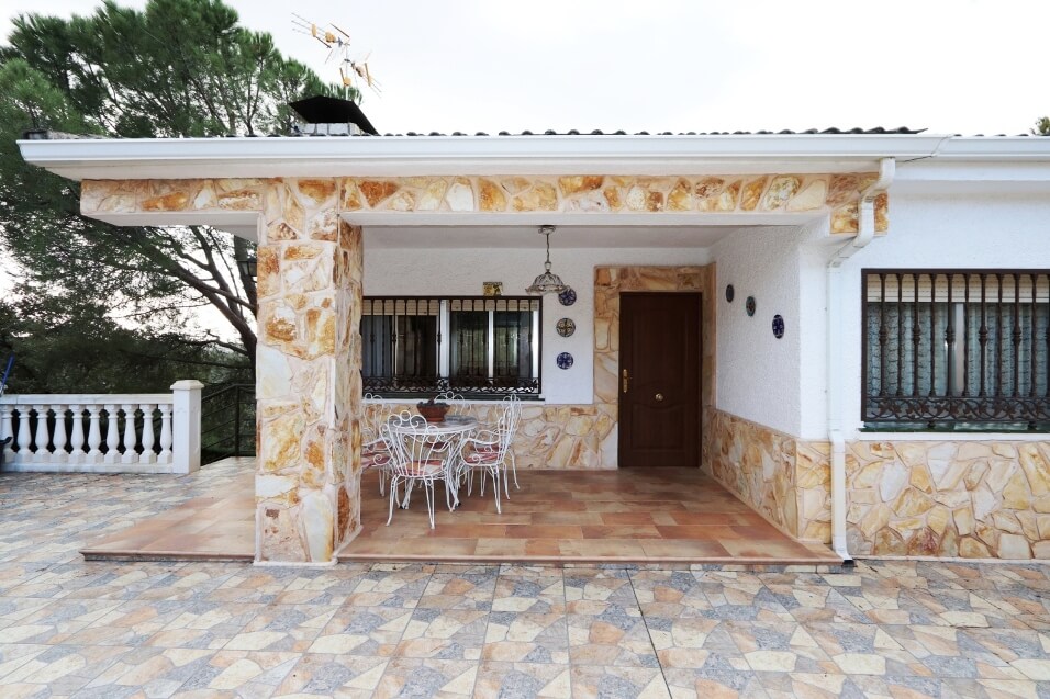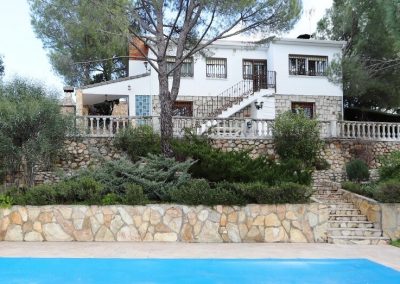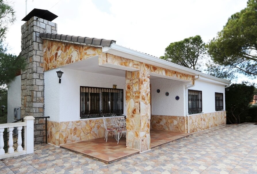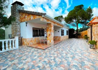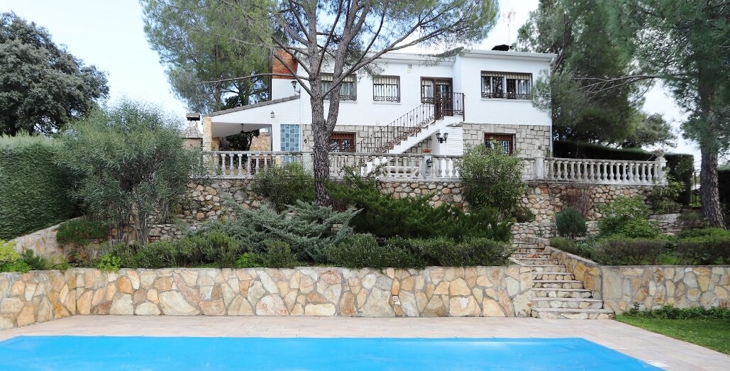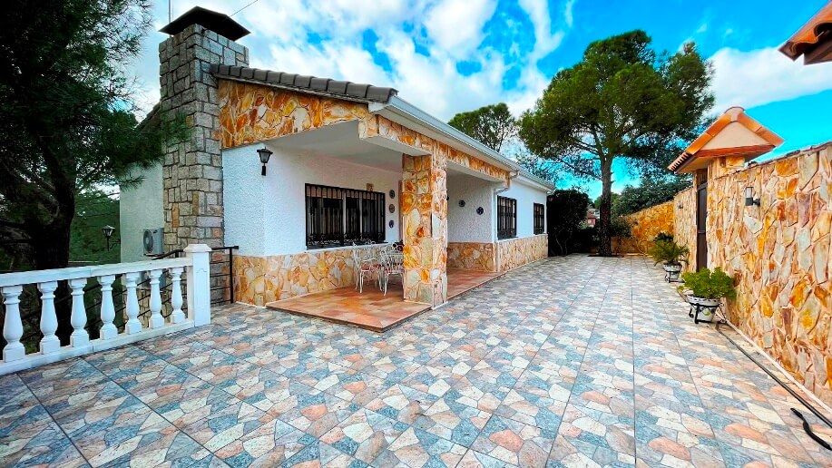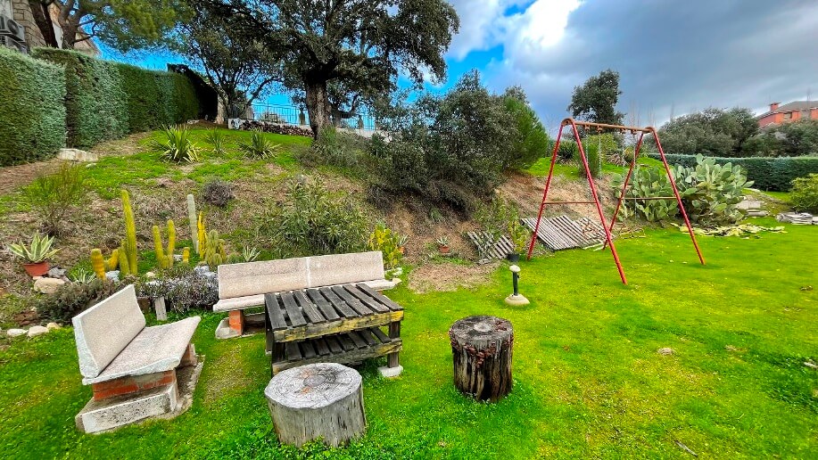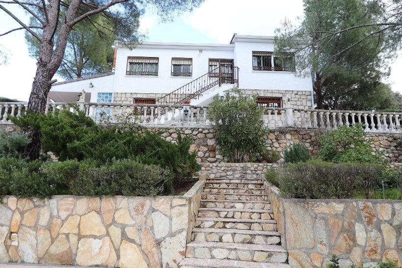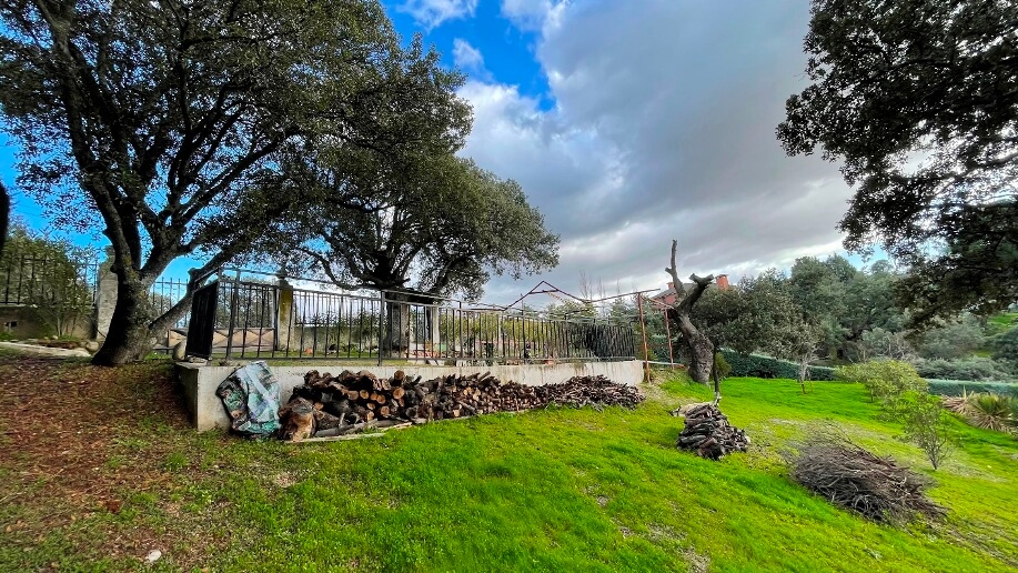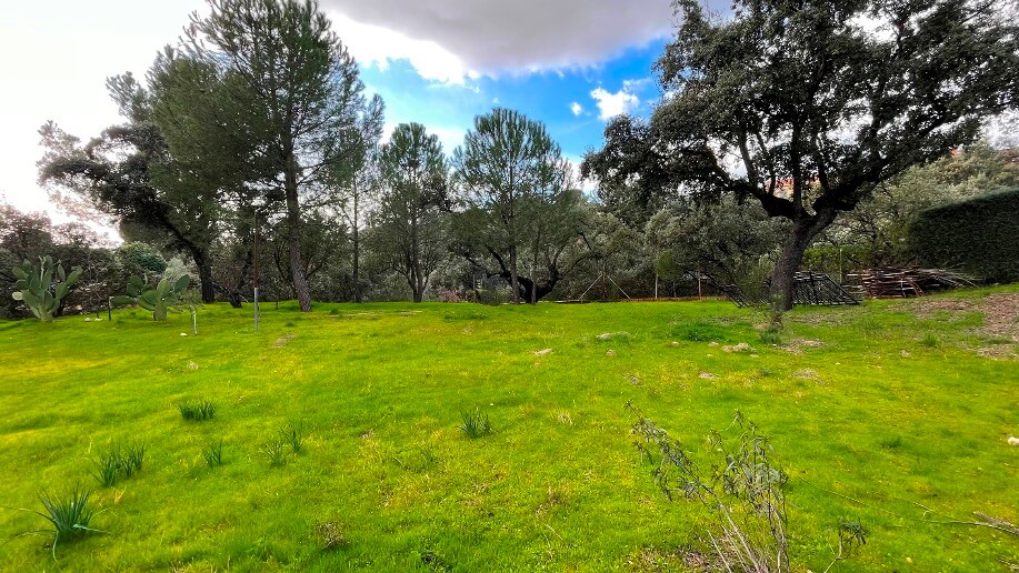 Chalet en Calalberche Calle Canario 18 y 20 con terreno de 2512 m2, es la suma de dos parcelas (883 m2 + 1629 m2), situado en la zona alta de la Urbanización, con gran independencia al estar rodeado por fondo y lateral con zona verde.