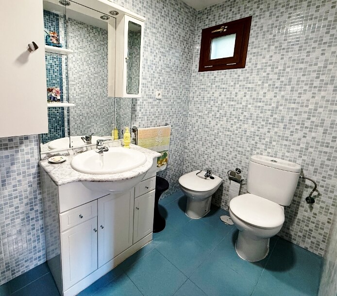 Planta primera a pie de calle con 84 m2 construidos, distribuida en salón con chimenea, tres dormitorios, cocina con salida y bajada a parte posterior, un cuarto de baño completo y porche de entrada.