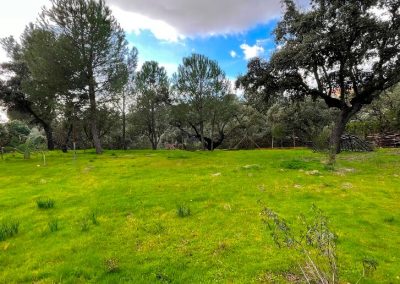 -CALLE CANARIO 20, parcela sin edificar de 1629 m2, magnifico y amplio terreno con encinas centenarias, totalmente vallado y planificado en tres mesetas.